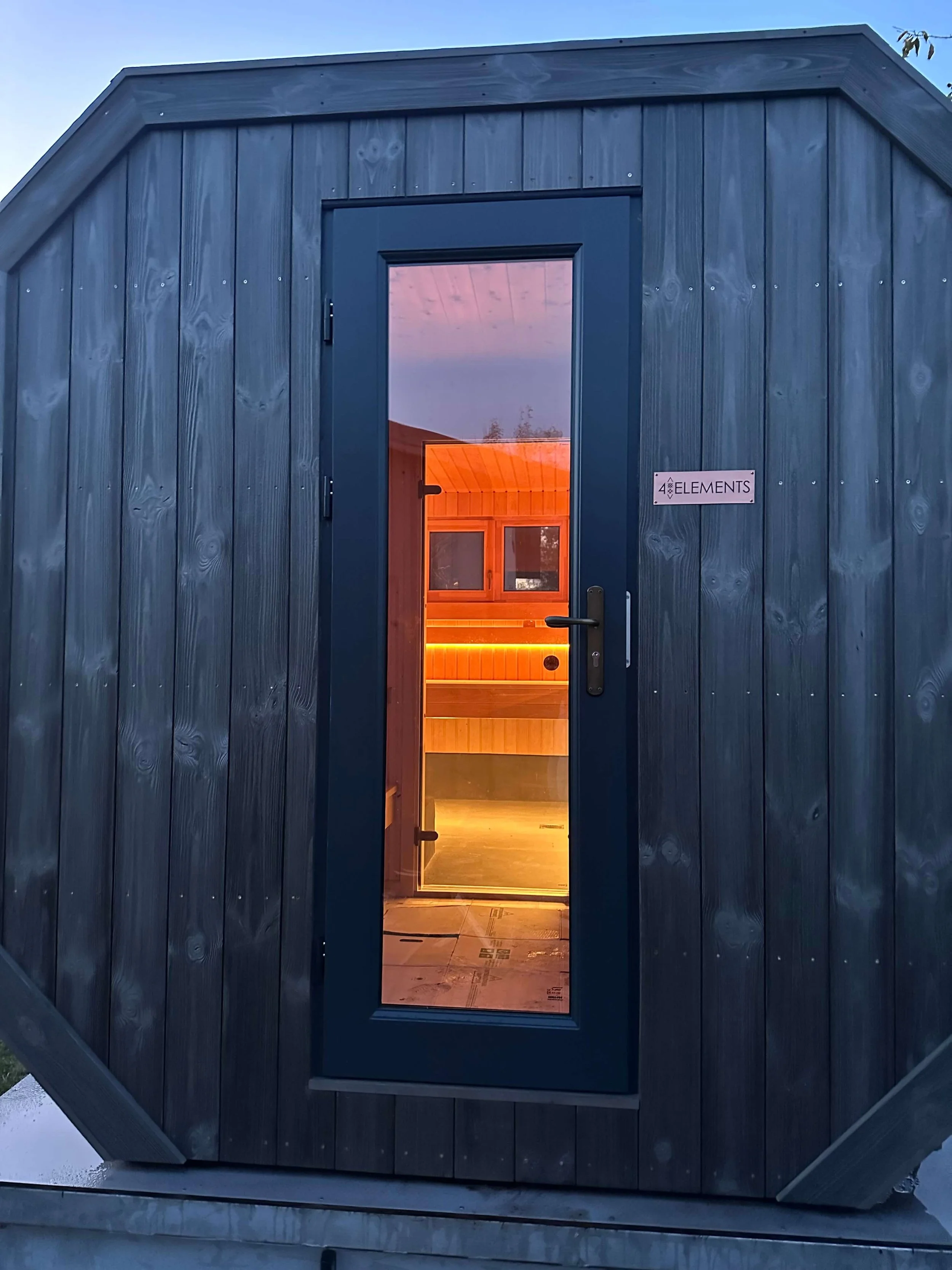 The 4 Elements mobile sauna is a fully framed sauna, built according to the same principles as a stationary, handcrafted sauna. It’s insulated with natural wood fiber, which breathes and maintains a balanced indoor climate. The lime-based floor stores warmth, is antibacterial, and feels pleasant underfoot. The interior is finished with alder wood, known for its warm tone, moisture resistance, and calm, natural scent.